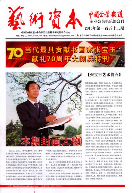 当代最具贡献书画家张宝玉献礼70周年大阅兵特刊 时间:2015-9-30 9:59:16 点击次数:2740