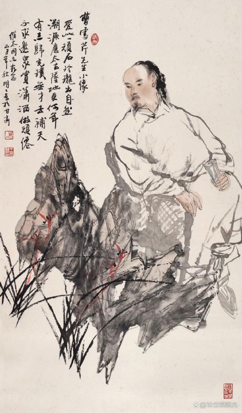 曹雪芹先生小像。爱此一顽石,玲珑出自然。溯源应太古,坠地更何年。有志归完璞, 无才去补天。不求邀众赏,潇洒做顽仙。维太同志存念,乙丑年秋明眀写于甘肃。
